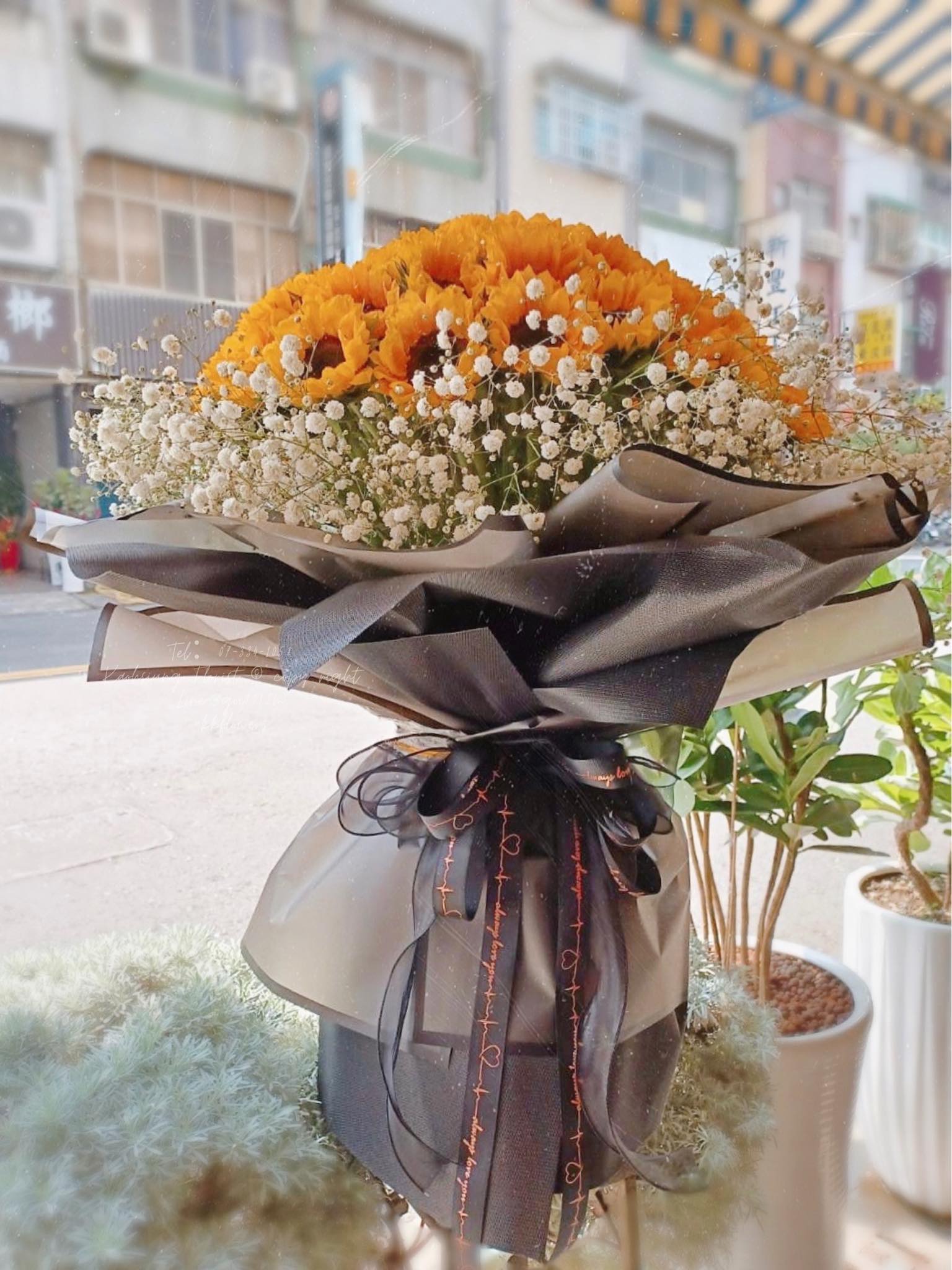 99 朵向日葵,匯聚成金色的海洋,把無盡的愛灑向她。