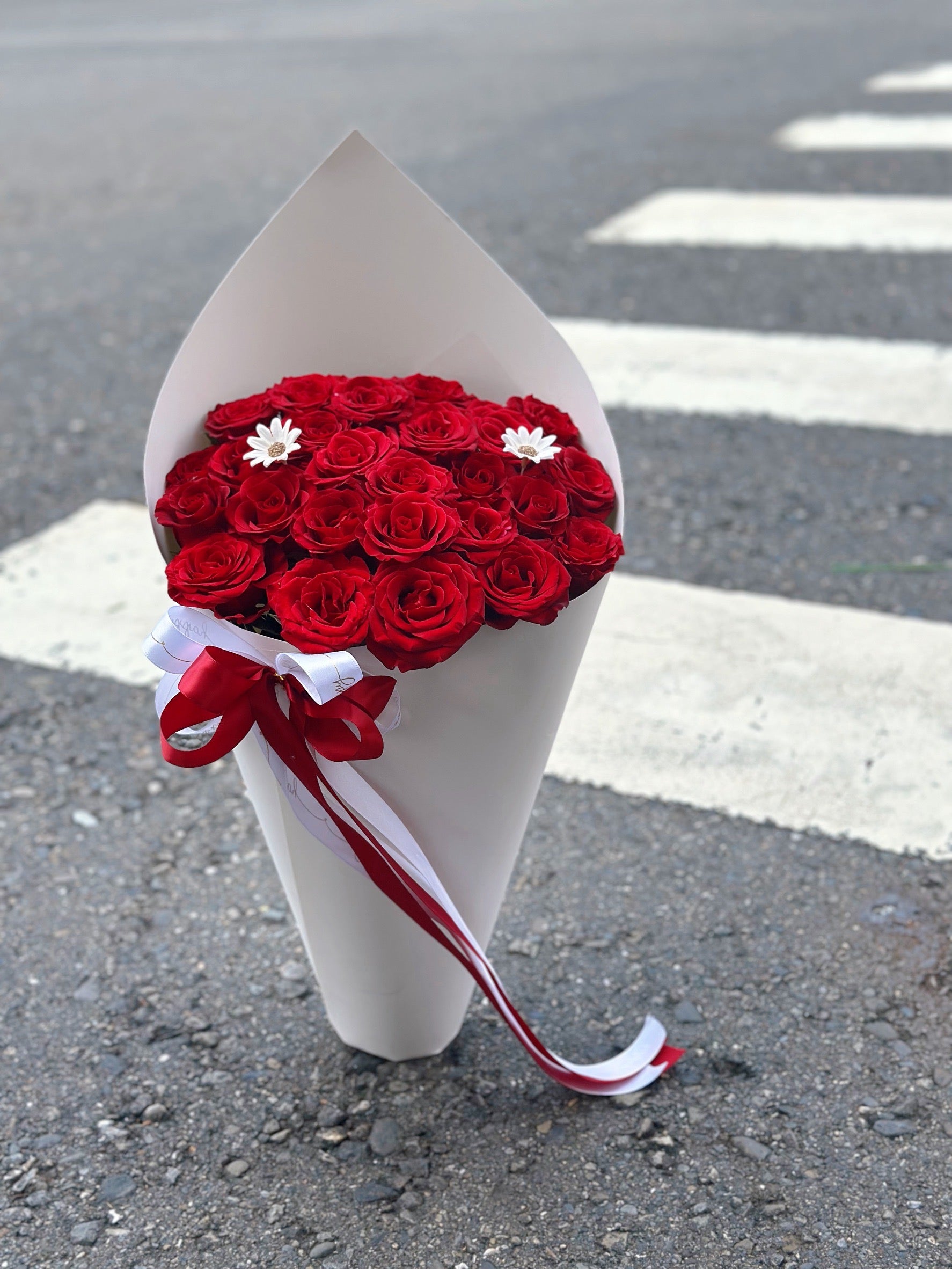 這不只是花束,是一支讓人心動的戀夏甜筒。香醇的紅玫瑰如莓果冰淇淋,甜甜的,彷彿能嚐出戀愛的滋味。在夏天最炙熱的午後,送一份不融化的甜蜜,把愛意封存在每一瓣花香中。