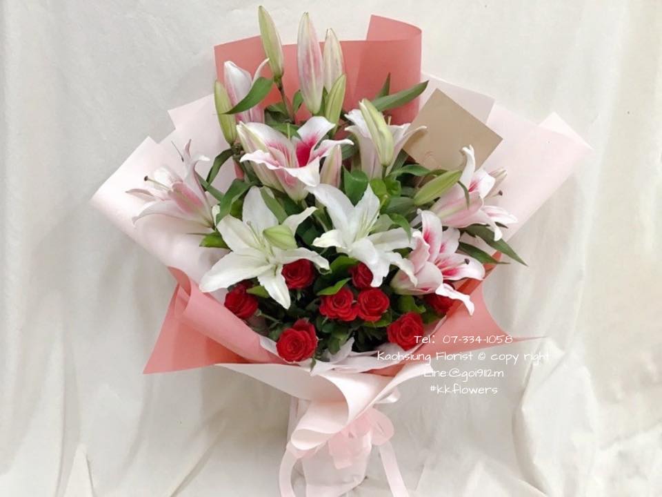 主花為白百合、粉百合、紅玫瑰。