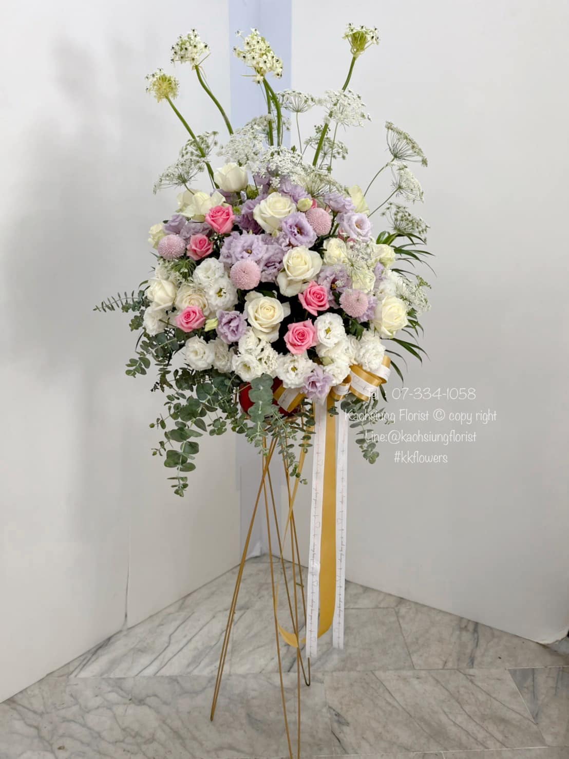 設計以固定主色調為基礎,即使遇到季節性花材缺貨,也會依照原有色系做出精緻替換,確保整體風格一致。