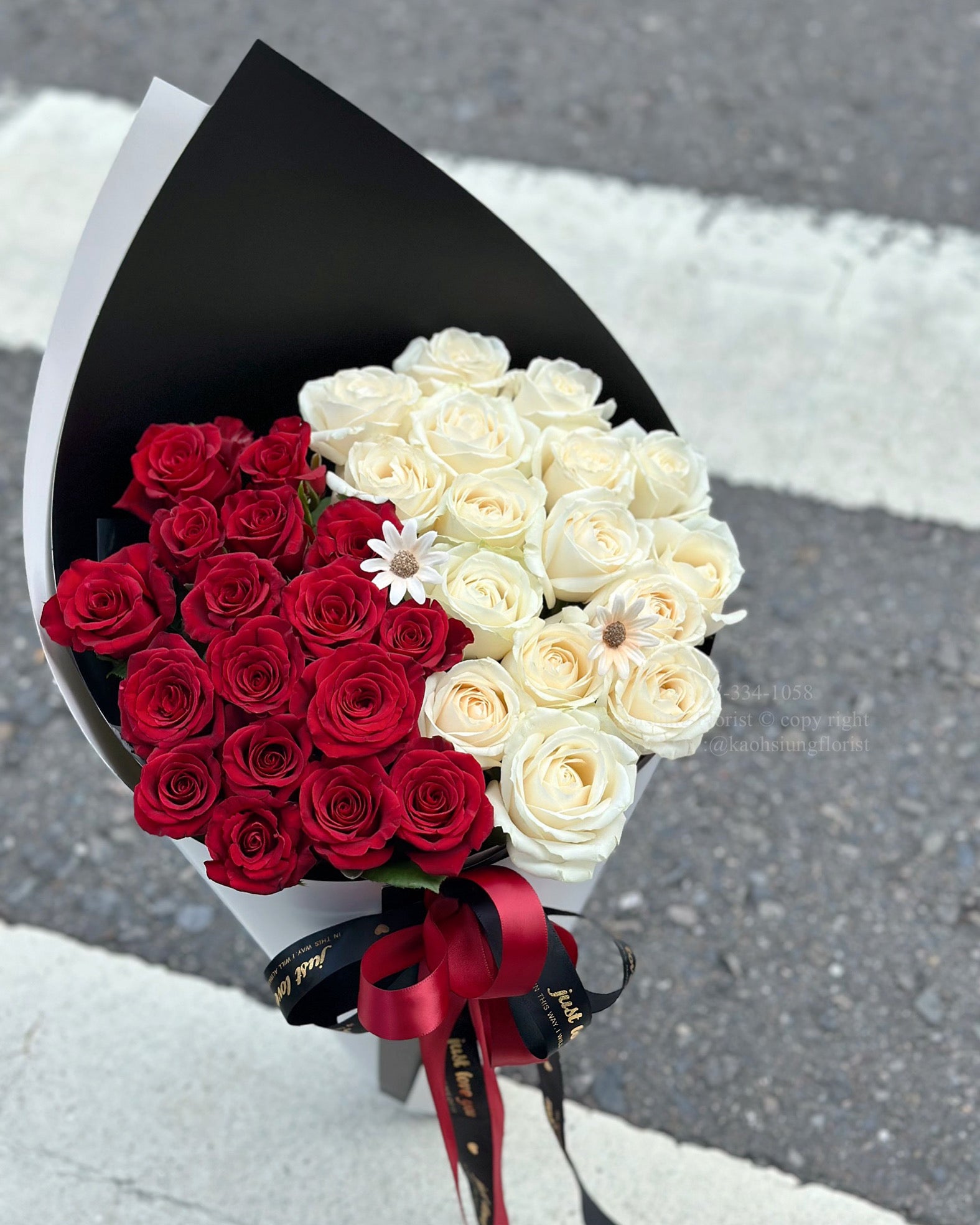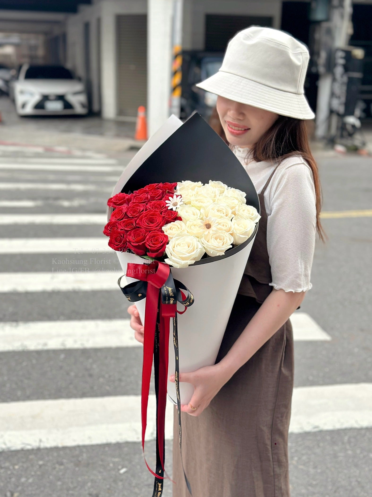 這不只是花束,是一支讓人心動的戀夏甜筒花束。香醇的紅玫瑰如莓果冰淇淋,奶油白玫瑰宛如香草雪酪,交織出戀愛的滋味。在夏天最炙熱的午後,送一份不融化的甜蜜,把愛意封存在每一瓣花香中。