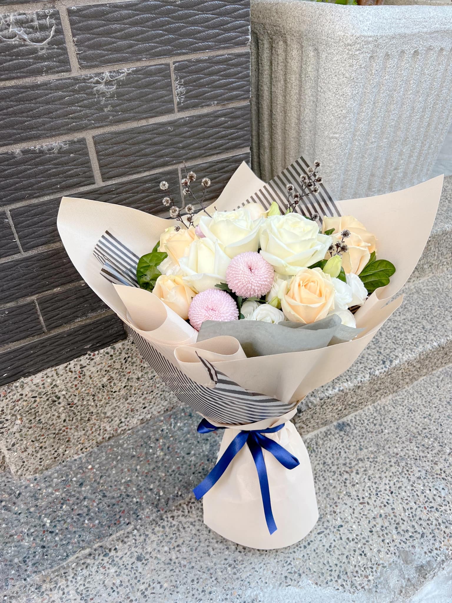 花材、花器或包裝紙可能受季節變化或供應商缺貨影響而有所不同;若遇此情況,我們將在不更換主花的前提下,依照等值、相同色系與尺寸進行調整。