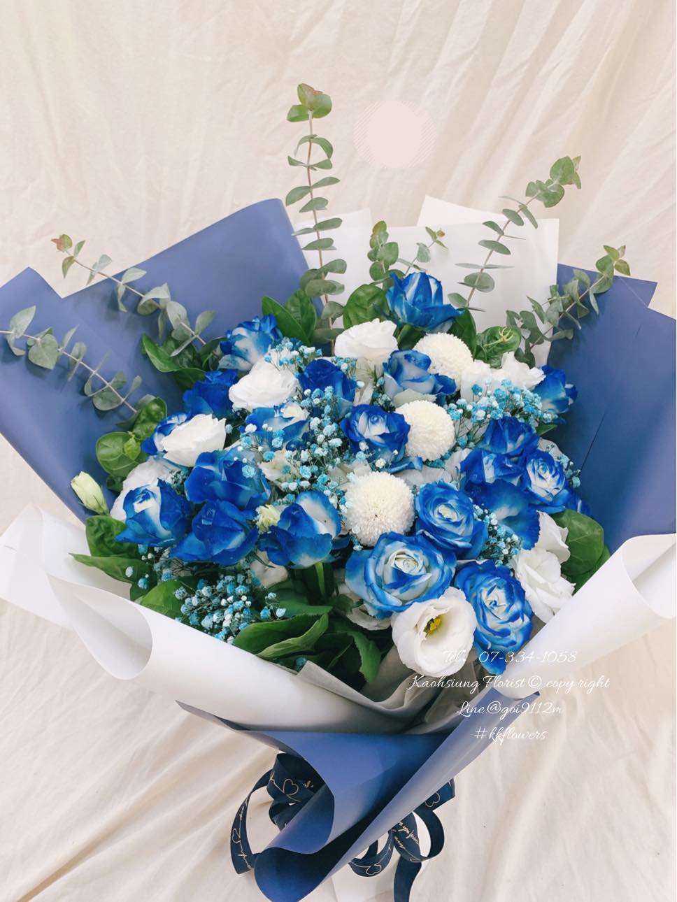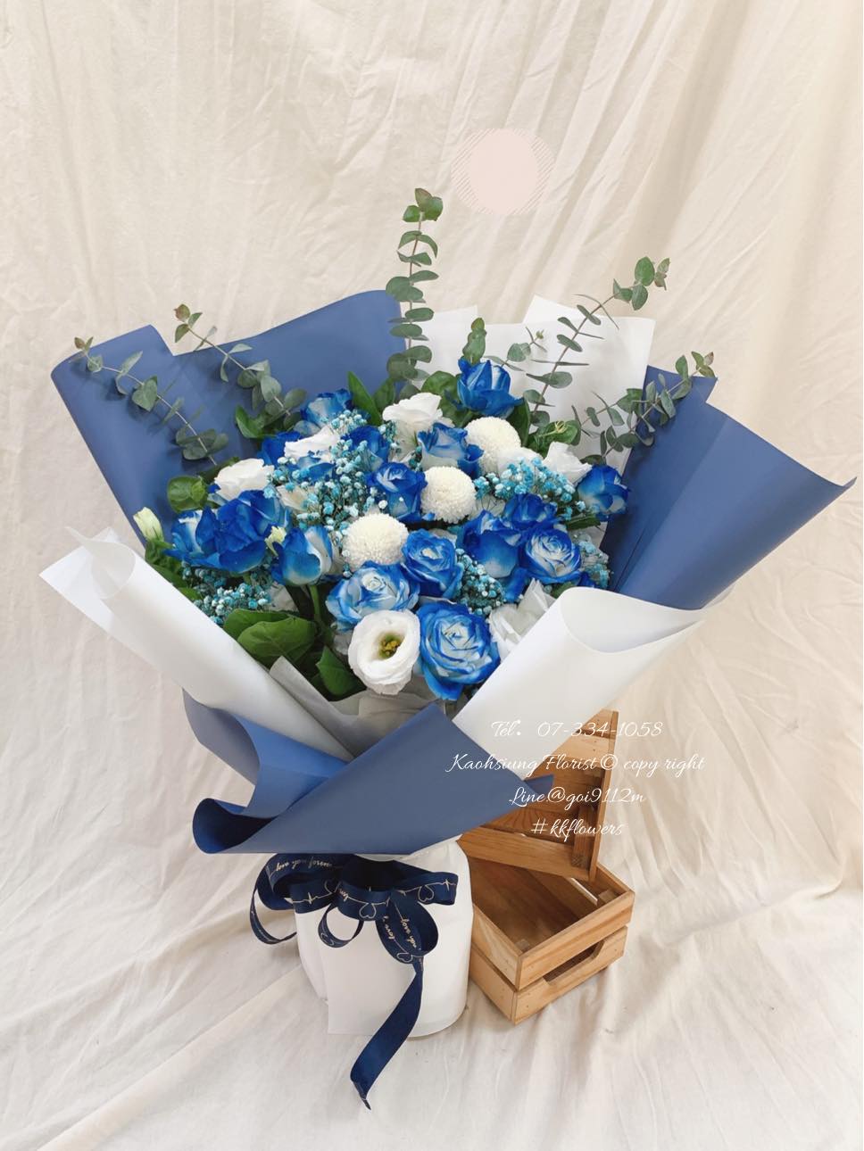 20朵藍玫瑰,如夢境中的花海,神秘而浪漫。花香輕拂心湖,彷彿走進只屬於兩人的藍色奇幻世界,把愛與幻想都盛開在此刻。