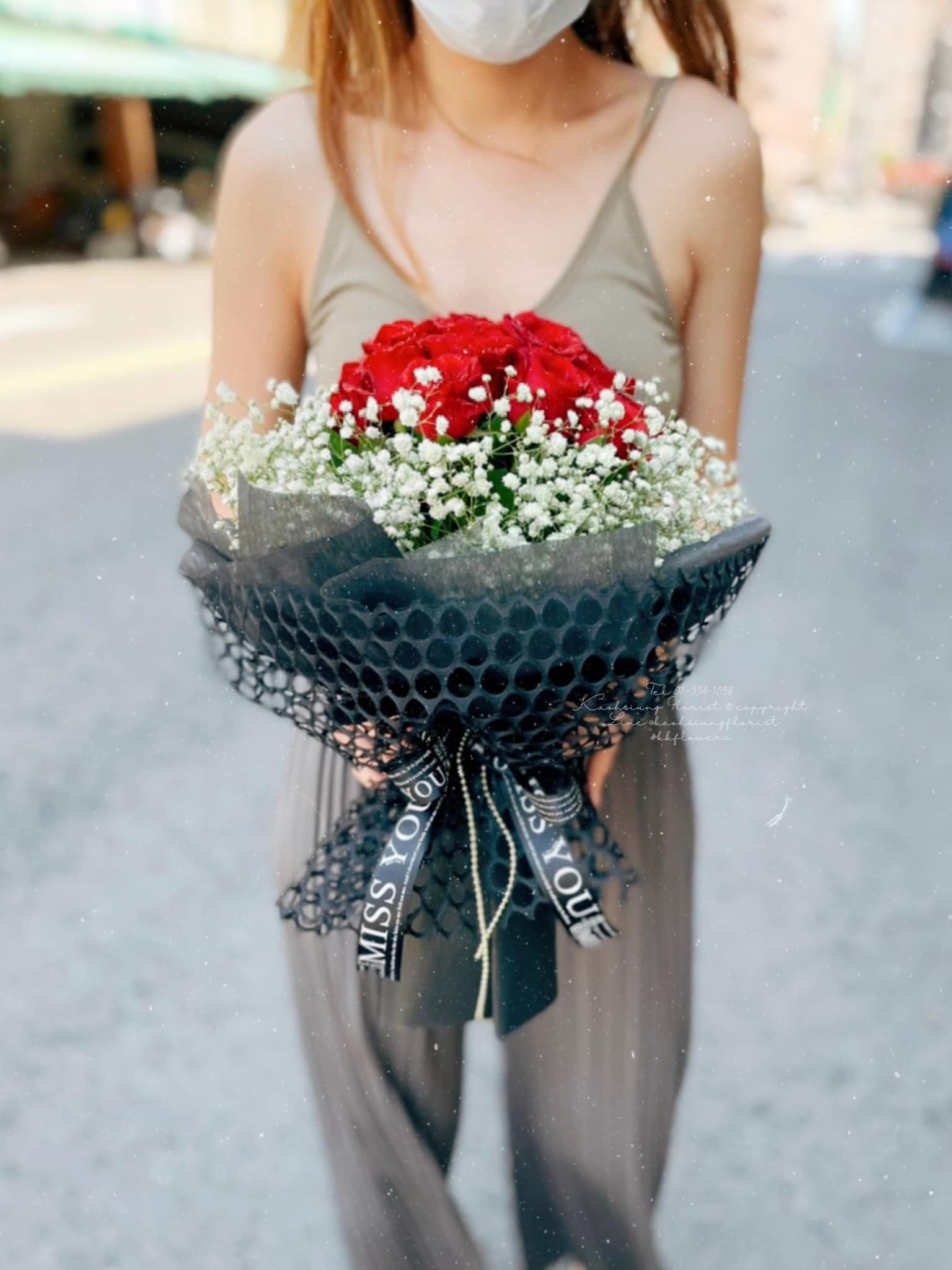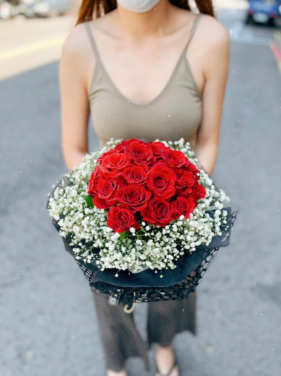 紅玫瑰在滿天星的簇擁下,就像心底那句久久沒說出口的話。無論是分隔兩地,還是默默守候,花語替你訴說——我在這裡,想你。